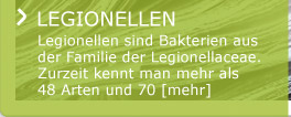 Legionellen sind gramnegative, nicht sporenbildende aerobe Bakterien, die zur Familie der Legionellaceae, Genus Legionella, gehören. Derzeit sind etwa 48 Arten bekannt, welche wiederum 70 verschiedene Serogruppen umfassen. Alle Legionellen sind als potenziell humanpathogen einzustufen. Die für Erkrankungen des Menschen bedeutsamste Art ist Legionella pneumophila, die für etwa 90 % aller Erkrankungen verantwortlich ist. Für Legionella pneumophila sind 16 Serogruppen bekannt, von denen die Serogruppe 1 die größte Bedeutung besitzt. Erkrankungen mit Legionellen treten in zwei unterschiedlichen Verlaufsformen auf, wobei bei beiden Begleiterscheinungen wie Unwohlsein, Fieber, Kopf-, Glieder-, Thoraxschmerzen, Husten, Durchfälle und Verwirrtheit vorkommen können. Die eigentliche "Legionärskrankheit" zeigt sich in einer schweren Lungenentzündung, die unbehandelt in 15-20% der Fälle tödlich verläuft. Die Inkubationszeit beträgt 2-10 Tage, in seltenen Fällen bis zu zwei Wochen. Beim weitaus häufiger vorkommenden "Pontiac-Fieber" handelt es sich um eine fiebrige, grippeähnliche Erkrankung mit einer Inkubationszeit bis zu zwei Tagen, die meist ohne Lungenbeteiligung binnen weniger Tage abheilt.